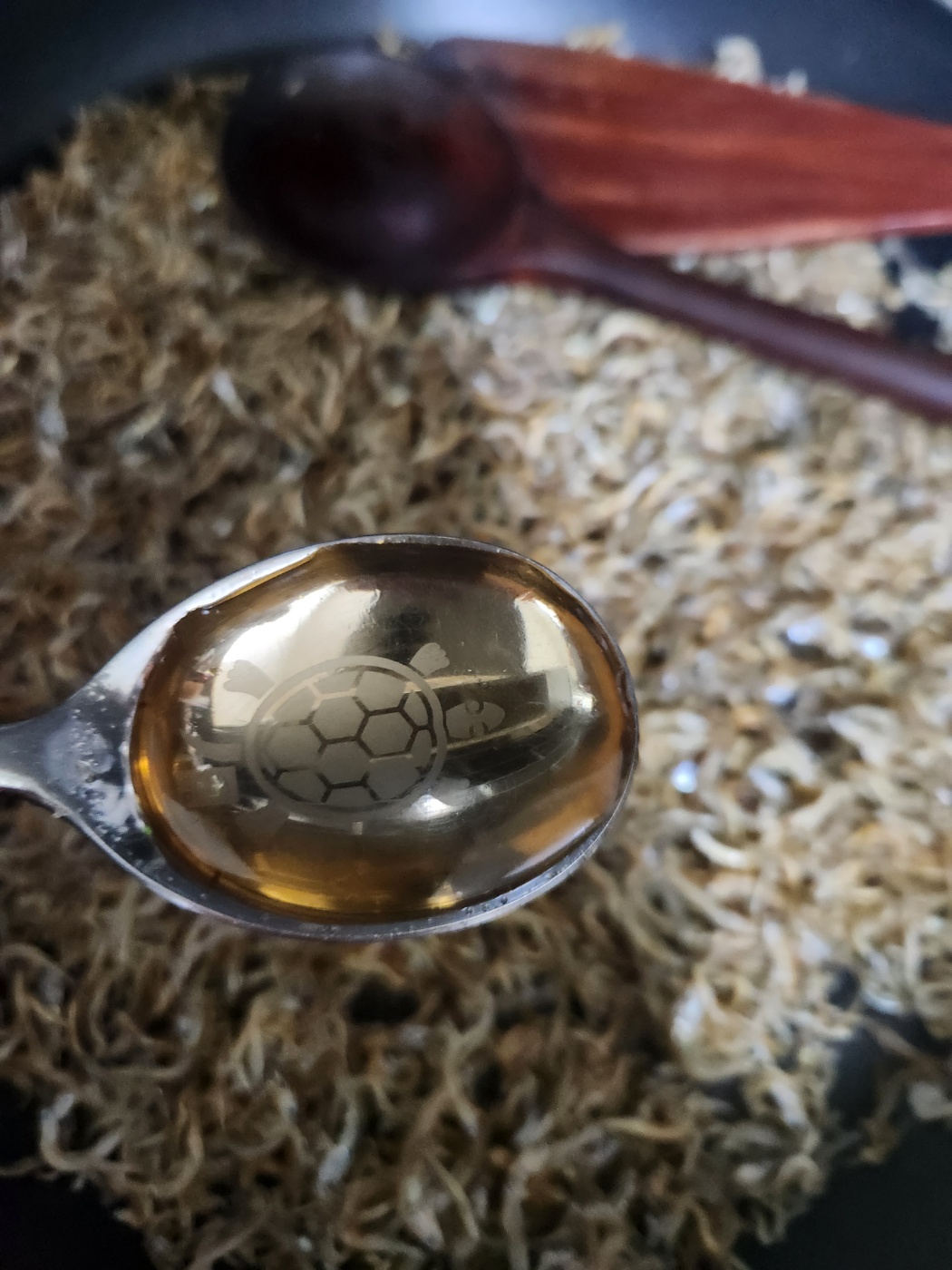 5. 다시 불을 키고 후올리고당 3스푼을 넣고 약불에서 5초 정도만 골고루 볶아줍니다.