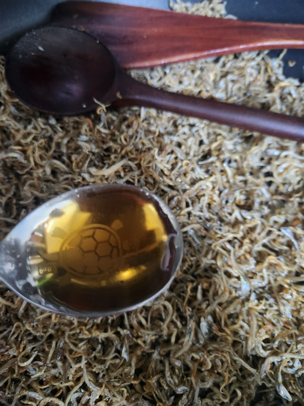 3. 멸치가 노릇노릇 해지면 오일 or 식용유 3스푼을 넣고 볶아줍니다.
